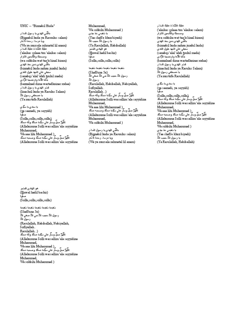 Lirik-Binnabil Huda Binnabil huda Ya Rasulussalam Wayamursala rahmatan lil anam Alaikassolatu waalaikassalam Wasohbika wattabiinal kirom Dengan Nabi yang membawa hidayah Wahai utusan rahmat sekalian alam Selawat salam pujian untukmu Para sahabat juga tabiin yang mulia. 0 votes and 0 comments so far on Reddit. Selawat salam pujian untukmu Para sahabat juga tabiin yang mulia.